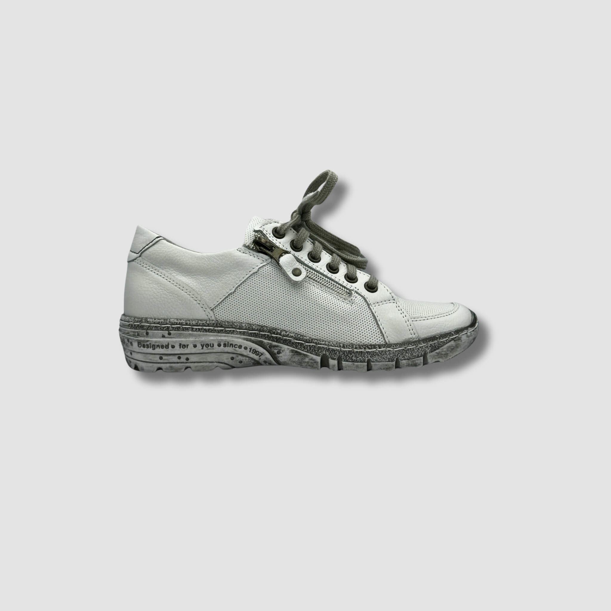 Przedstawiamy ręcznie szyty but z polskiej skóry w subtelnym, białym kolorze, który doskonale łączy nowoczesny design z codzienną funkcjonalnością. Wykonany z najwyższej jakości materiałów, zapewnia trwałość i wygodę przez cały dzień. Perforowana cholewka nie tylko dodaje stylu, ale także zapewnia odpowiednią wentylację, idealną na cieplejsze dni.
