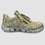Te damskie buty od firmy KACPER w kolorze beżowym to propozycja dla osób ceniących sobie subtelny, a jednocześnie unikalny styl. Naturalny odcień i oryginalna tekstura materiału nadają im wyjątkowego charakteru, idealnie pasującego zarówno do casualowych, jak i bardziej swobodnych stylizacji. Zapięcie na suwak połączone z sznurowaniem zapewnia wygodę i łatwość użytkowania, a solidna, ozdobiona efektownym postarzanym wykończeniem podeszwa gwarantuje komfort podczas codziennych spacerów. To idealne obuwie dla osób, które szukają połączenia modnego wyglądu z praktycznością i wygodą.