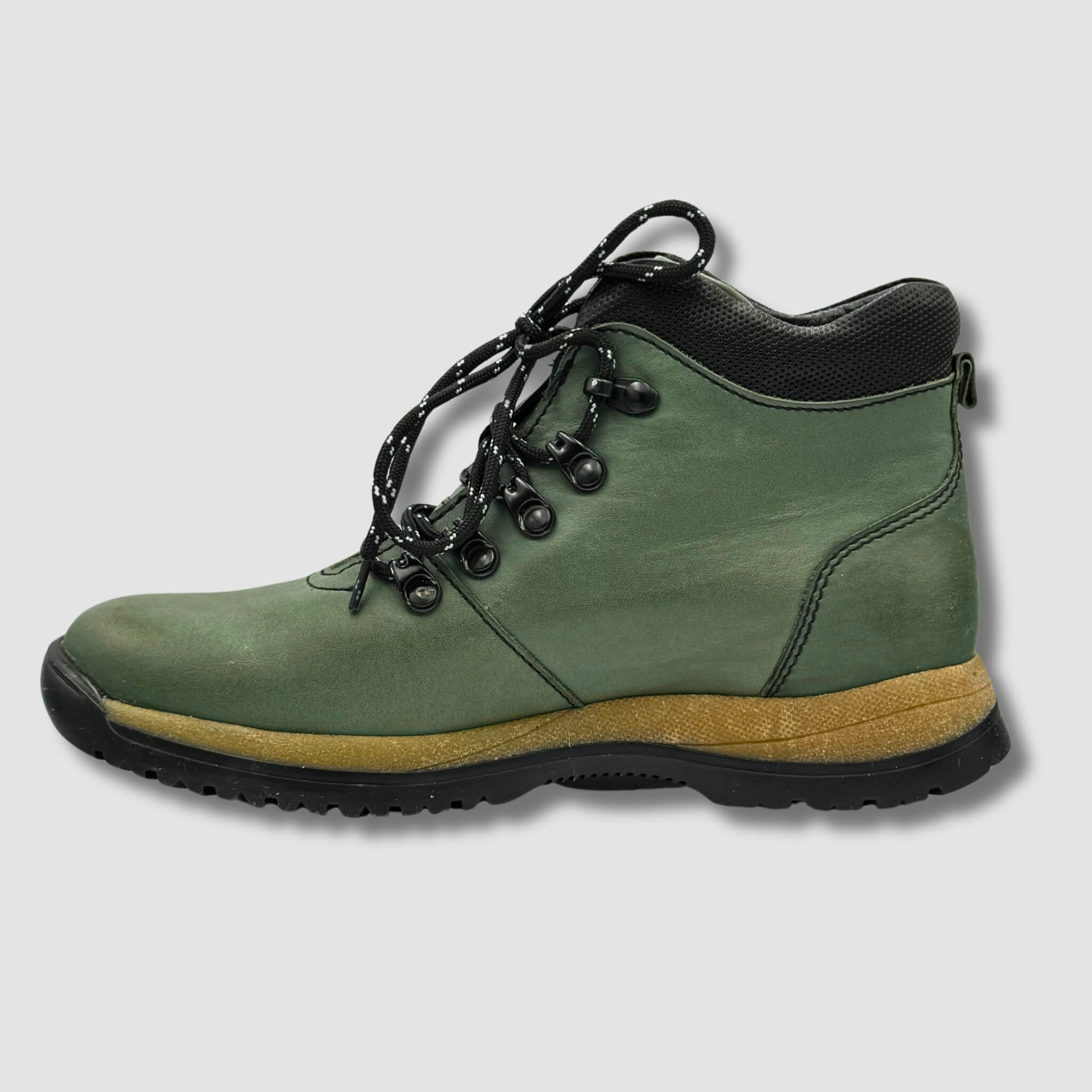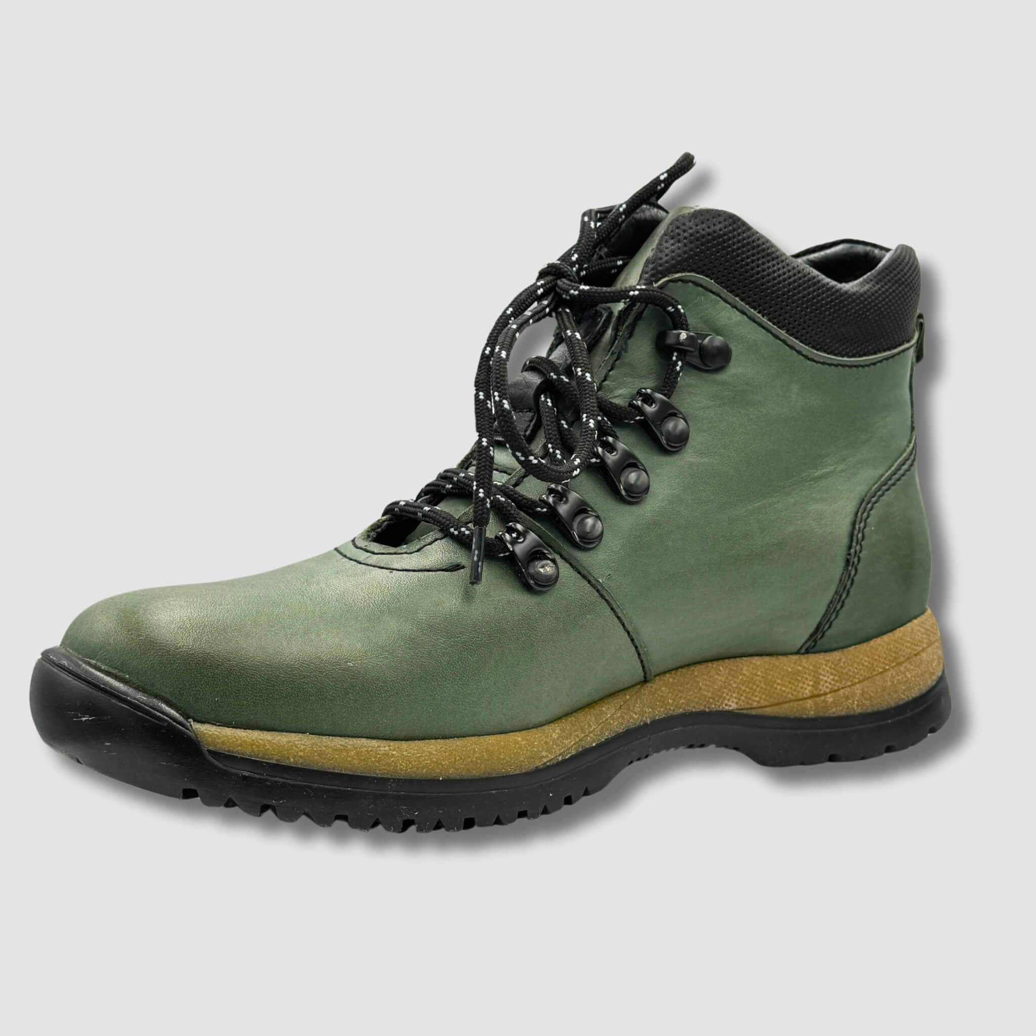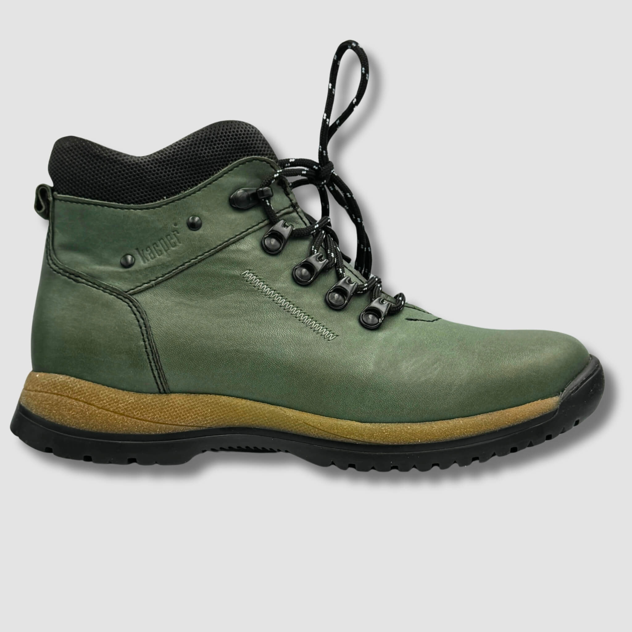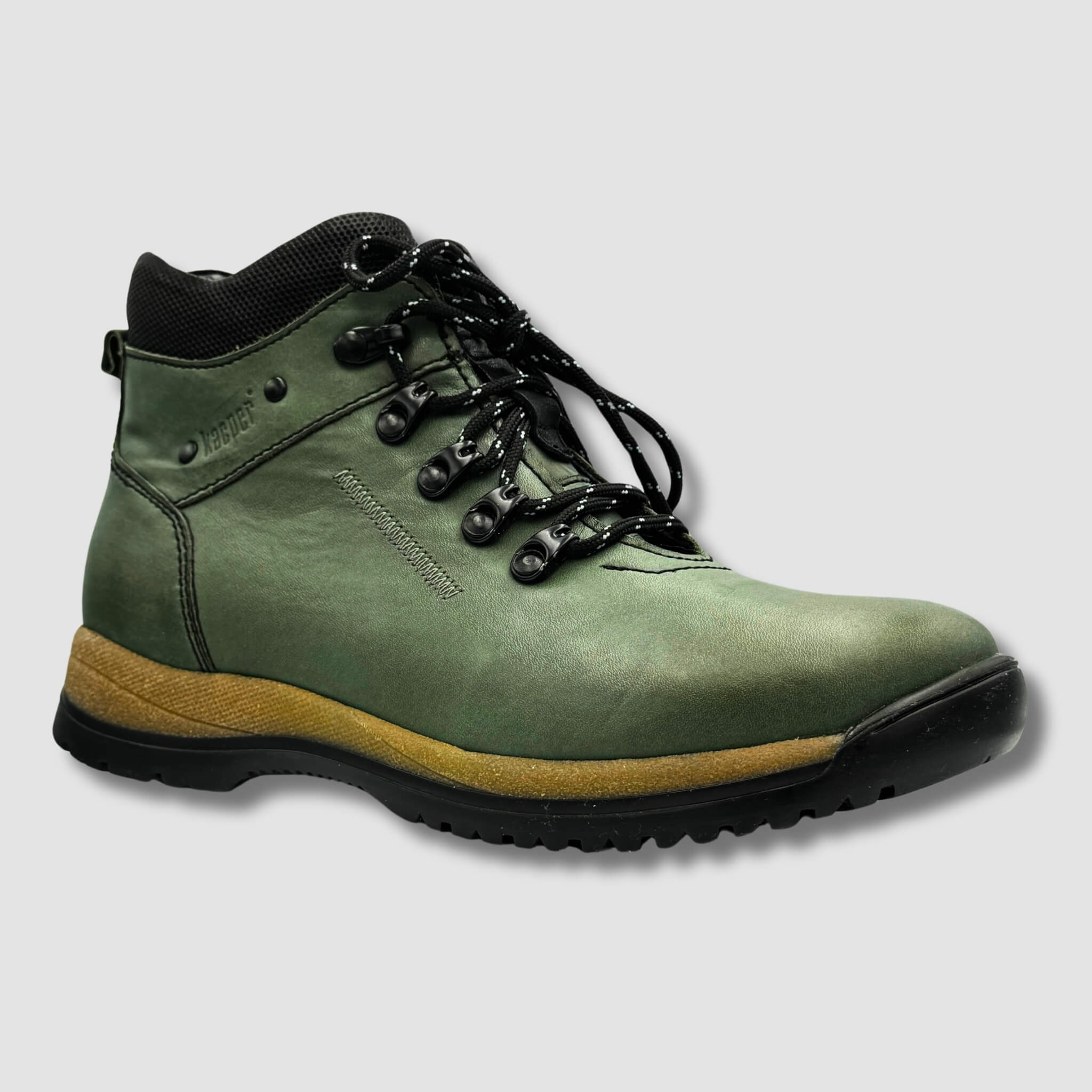 Prezentowany model to doskonała propozycja dla osób ceniących sobie komfort i trwałość podczas aktywności na świeżym powietrzu. Wykonany z wysokiej jakości skóry naturalnej w stonowanym, zielonym kolorze, but charakteryzuje się odpornością na trudne warunki pogodowe oraz wyjątkową wytrzymałością.